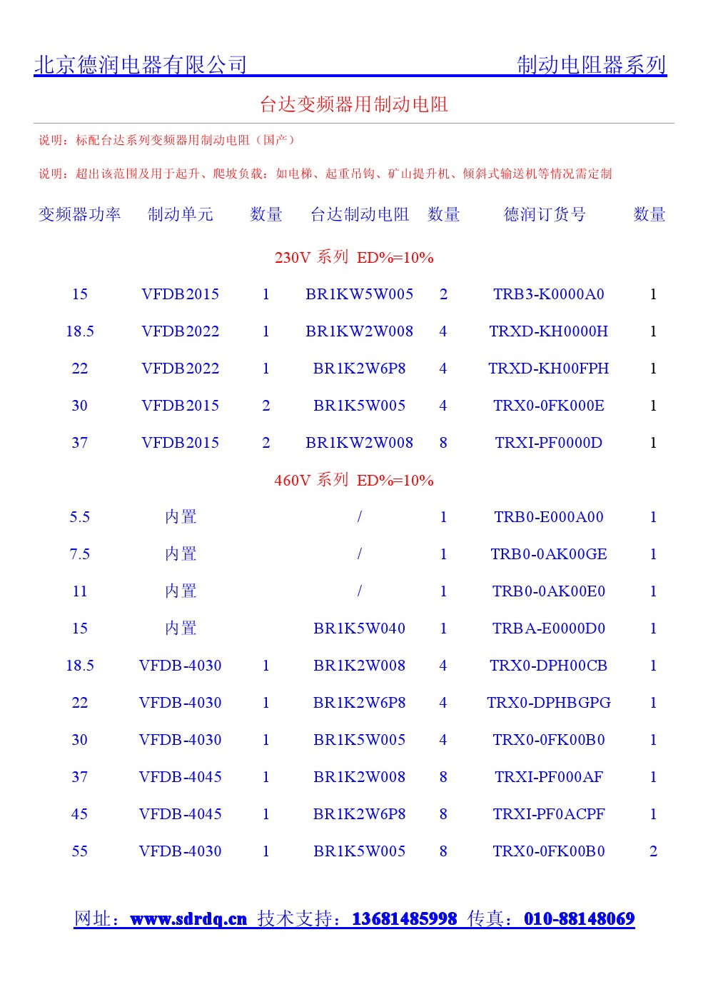 以上是臺達變頻器用制動電阻的詳細信息,如果您對臺達變頻器用制動電阻的價格、選型樣本、型號、制動功率、阻值有什么疑問,請聯(lián)系我們獲取臺達變頻器用制動電阻的最新信息,我們會盡全力為您提供準確、全面的臺達變頻器用制動電阻的產(chǎn)品信息。