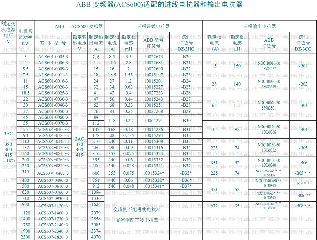 適配ABB變頻器用進(jìn)線(輸出)電抗器